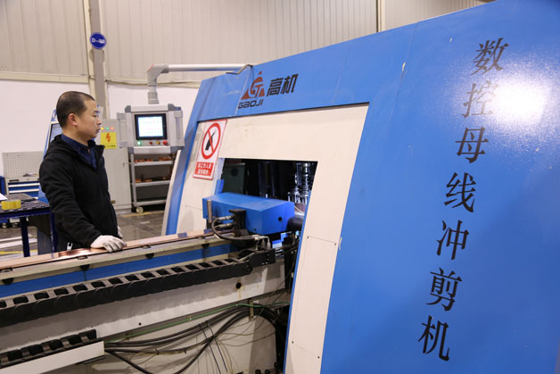 在銅排加工區(qū),這里人數(shù)雖然不多,但是員工們熱火朝天的干勁卻絲毫不差,有的在操作數(shù)控母線沖剪機,有的在打磨著銅排母線,大家堅守崗位,以高昂的工作激情,力爭以高標(biāo)準(zhǔn)、高質(zhì)量的要求確保項目交付。