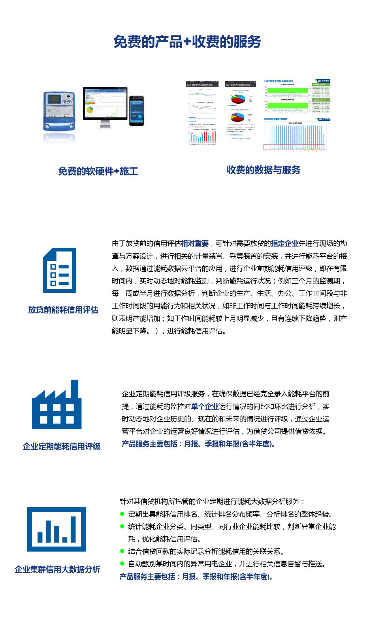 威勝第三方能源征信云平臺,通過構(gòu)建能耗信用評價體系,建立中小企業(yè)的能耗信用評級。從開工率、開工小時數(shù)、日/周/月生產(chǎn)趨勢、用電行為、數(shù)據(jù)采集完整率等多個方面,對評估企業(yè)的生產(chǎn)運營狀況進行評估與判定,為信貸機構(gòu)提供貸款的客觀依據(jù)。