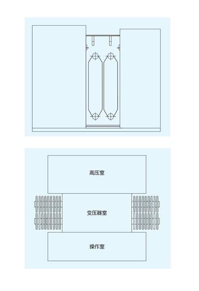 1、 箱變結(jié)構(gòu)分為變壓器本體、高壓室、低壓室、檢測室、開關(guān)操作室和熔斷器室六個部分,可按“目”字型或“品”字型排列。