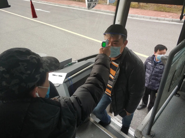 上車前體溫檢測(cè),確保合格佩戴口罩,