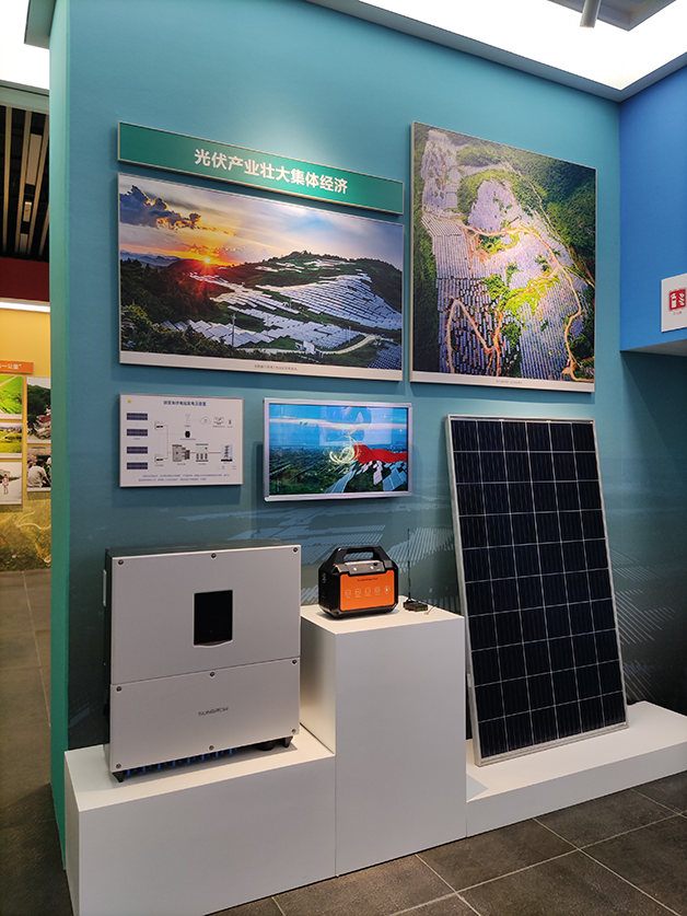 特別值得一提的是,在成就展2號(hào)展廳,有一個(gè)特別的一角,它以光伏扶貧產(chǎn)品+視頻+圖片等形式充分展現(xiàn)了以威勝電氣為代表的能源企業(yè),近年來(lái)充分結(jié)合實(shí)際,積極開(kāi)展光伏扶貧工作,為貧困地區(qū)建設(shè)光伏電站,上網(wǎng)電量收益直接用于貧困群眾增收,為實(shí)現(xiàn)“精準(zhǔn)扶貧”、壯大集體經(jīng)濟(jì)提供了“湖南樣本”!