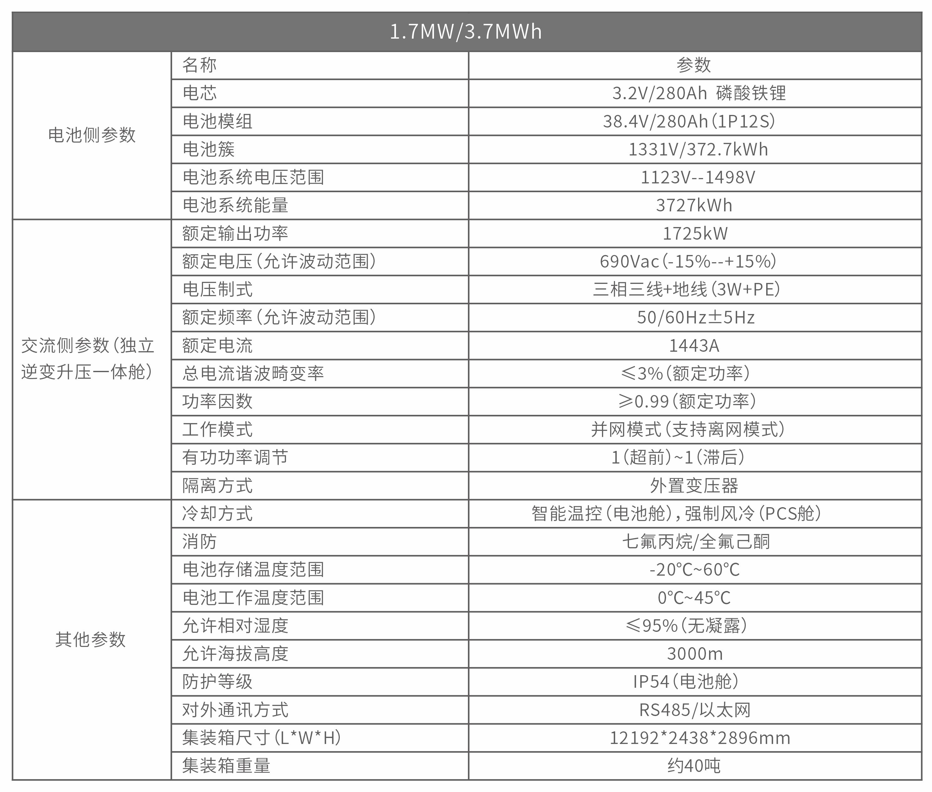 • 1.7MW/3.7MWh儲能系統(tǒng)
