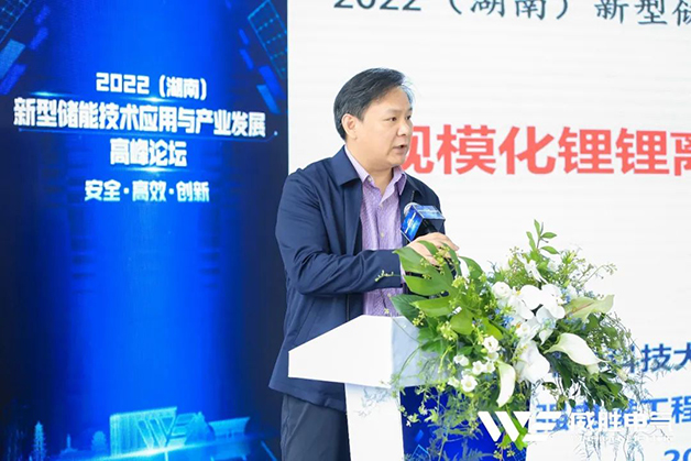 在專家主題分享環(huán)節(jié),湖南省人民政府參事、湖南省電池行業(yè)協(xié)會會長、中南大學(xué)唐有根教授首先上臺發(fā)言,唐教授從事儲能電池材料及電池研究多年,并作為省政府參事參與省、市先進(jìn)儲能材料產(chǎn)業(yè)相關(guān)政策制定,他的主題發(fā)言題為《電化學(xué)儲能技術(shù)的發(fā)展》,深入剖析了電化學(xué)儲能技術(shù)的發(fā)展歷程及現(xiàn)狀,并表示多種電化學(xué)儲能技術(shù)均已進(jìn)入產(chǎn)業(yè)化階段,很多新的儲能技術(shù)迭代發(fā)展,化學(xué)儲能技術(shù)可實(shí)現(xiàn)大規(guī)模電力儲能,它的發(fā)展對于我國未來能源戰(zhàn)略發(fā)展具有重大意義。