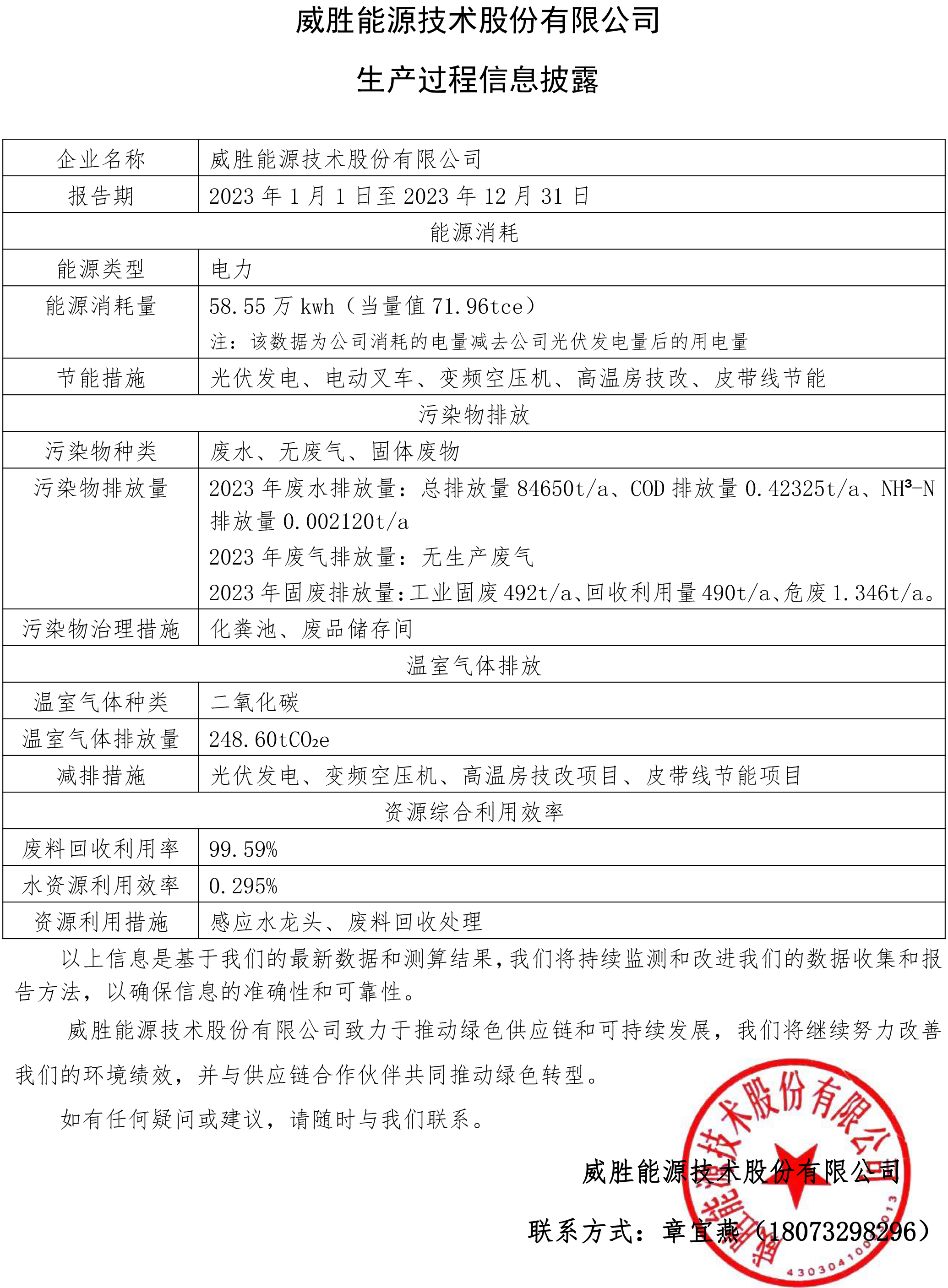 惟遠能源技術(shù)股份有限公司生產(chǎn)過程信息披露