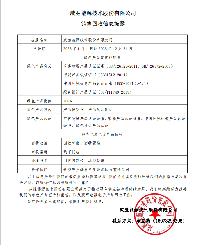 惟遠(yuǎn)能源技術(shù)股份有限公司-銷售回收信息披露