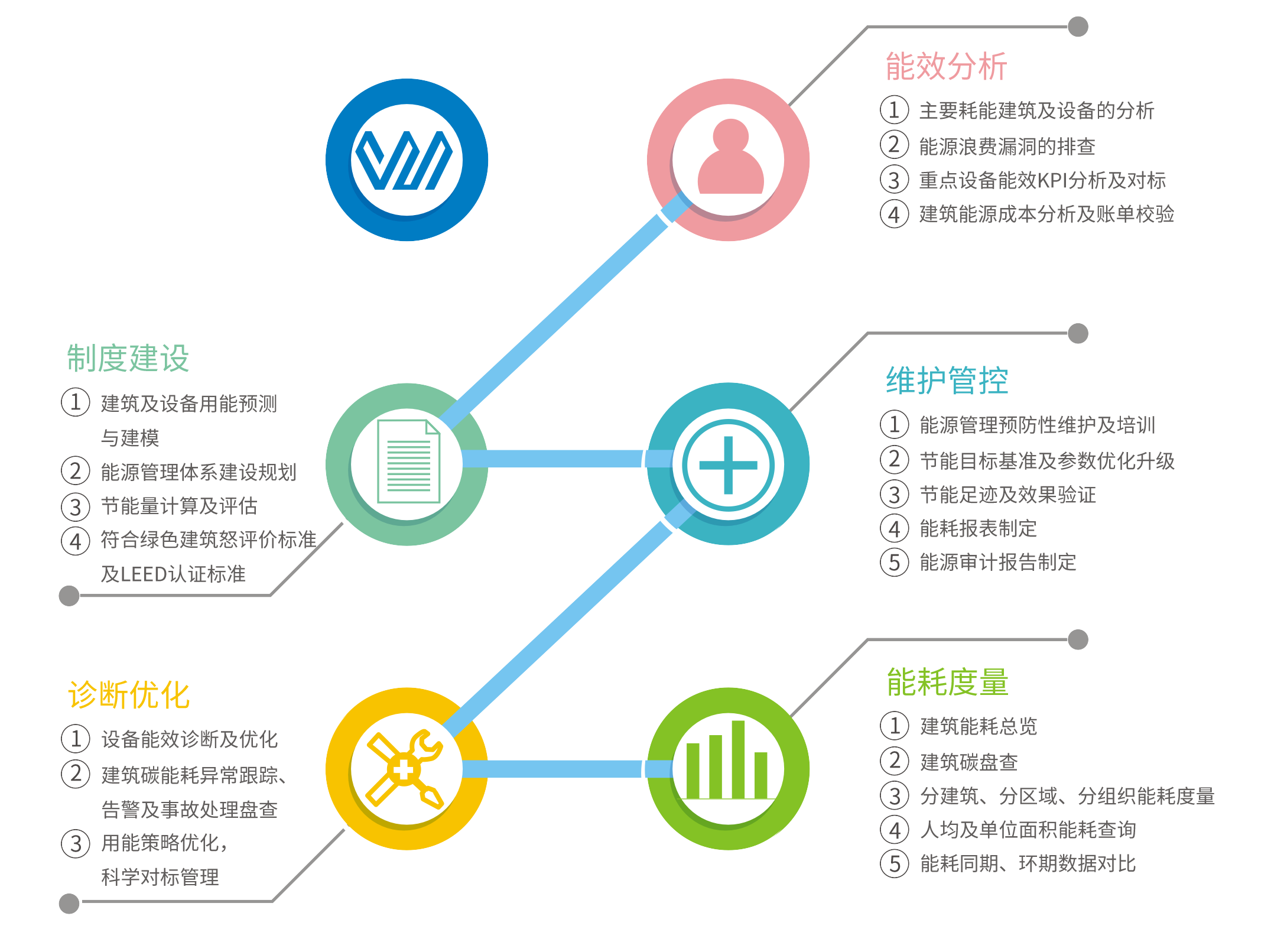 威勝的整體能效解決方案,是針對工業(yè)企業(yè)、軌道交通、數(shù)據(jù)中心、大型商業(yè)綜合體、政府公建等大型用電客戶構建的一套用能解決方案。該方案包括水、電、氣、熱等多種能源種類,以能源購入、能源存儲、能源消耗等能源使用過程為導向的全生命周期用能管理方案,竭力幫助用戶減少能源損耗、提高能源利用率。