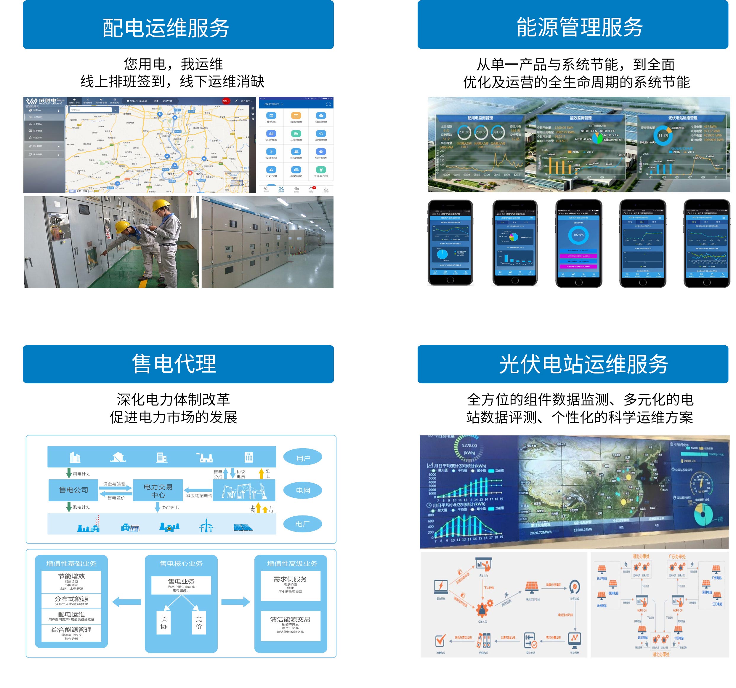 綜合能源服務(wù)解決方案是針對智能化配電運維服務(wù)及能源(節(jié)能)管理、售電代理、光伏電站運維服務(wù)等業(yè)務(wù)提供一站式的智能化能源綜合服務(wù)方案。