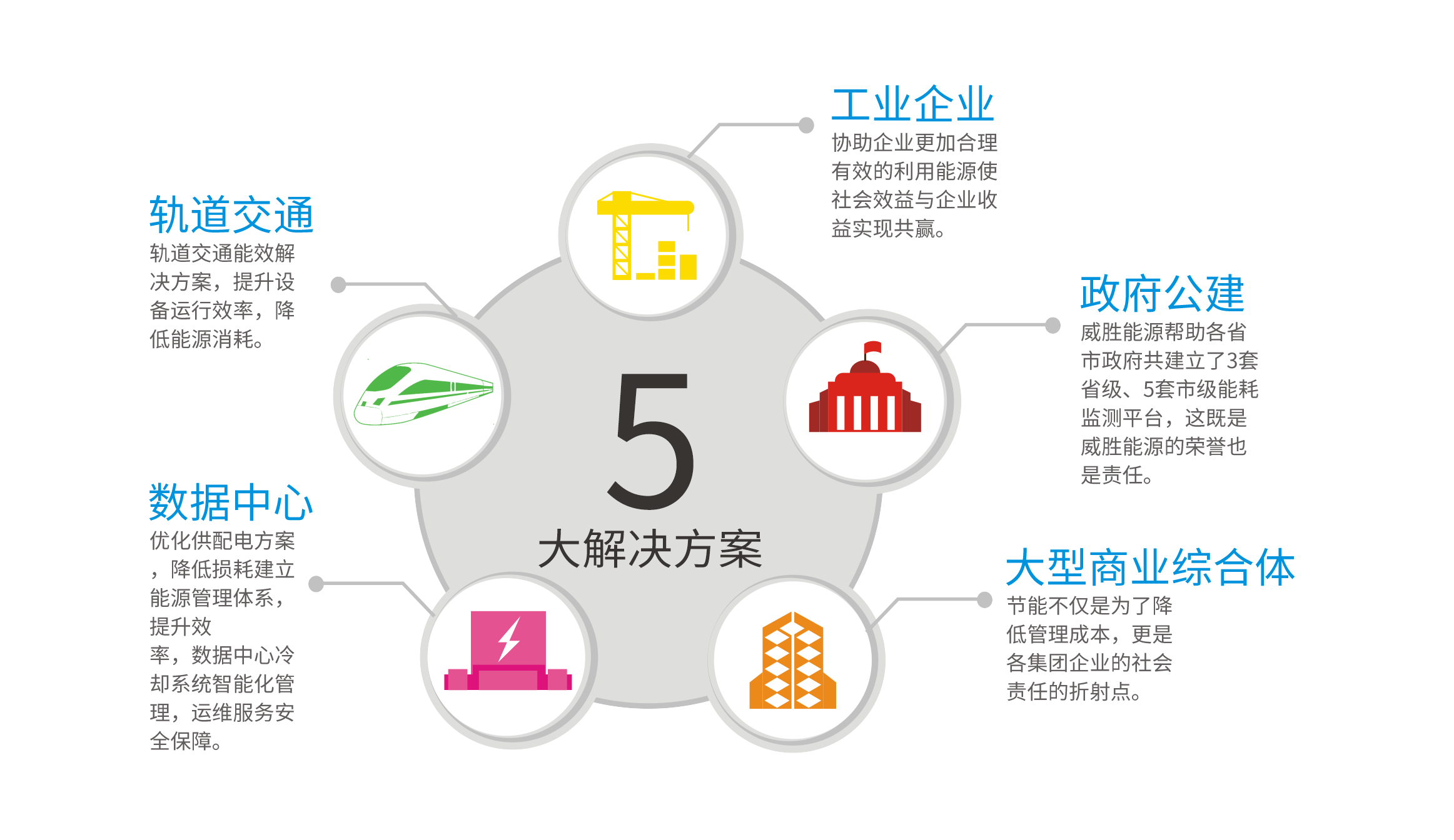 威勝的整體能效解決方案,是針對(duì)工業(yè)企業(yè)、軌道交通、數(shù)據(jù)中心、大型商業(yè)綜合體、政府公建等大型用電客戶構(gòu)建的一套用能解決方案。該方案包括水、電、氣、熱等多種能源種類,以能源購入、能源存儲(chǔ)、能源消耗等能源使用過程為導(dǎo)向的全生命周期用能管理方案,竭力幫助用戶減少能源損耗、提高能源利用率。